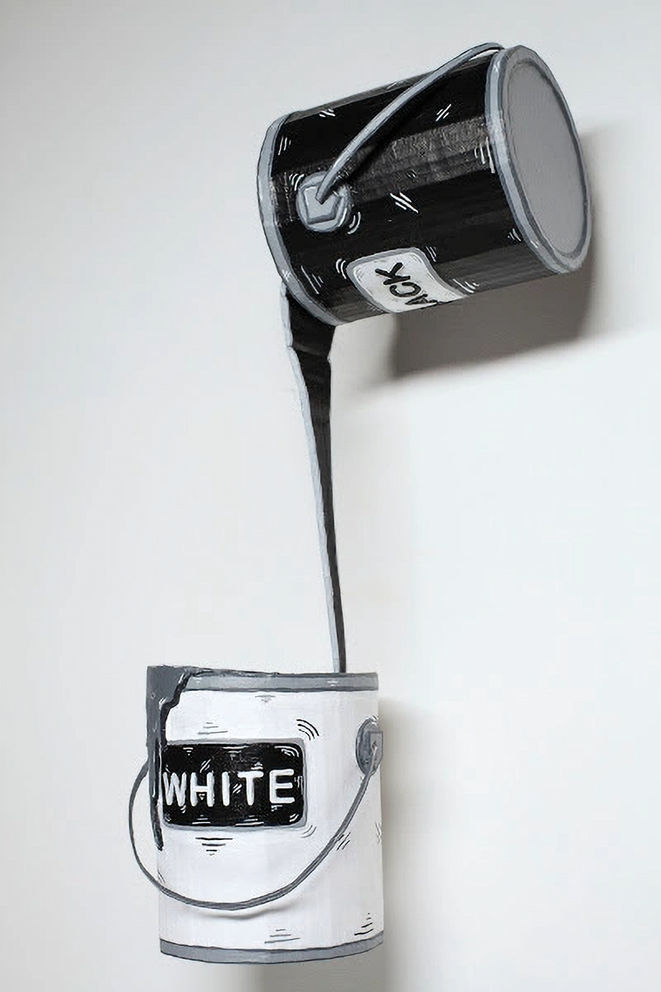 Recycled cardboard, paper, and acrylic are the primary mediums used to create Dosshaus’ highly idealized universe. The works themselves invert the very idea of the readymade. They are highly manipulated, sculpted pieces that give the illusion of everyday objects from an alternate, animated dimension. This cardboard world is at once separate from and a product of modern culture.